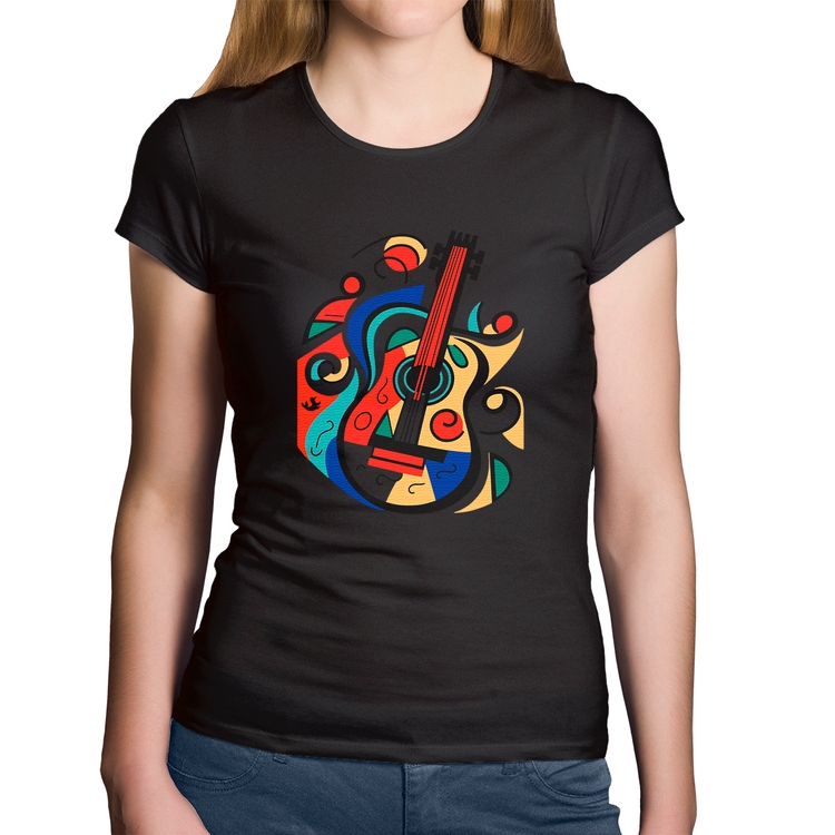 A Baby Look Algodão Violão Colors é confeccionada em tecido 100% Algodão, malha penteada fio 30.1 com gola redonda viés, costura reforçada ombro a ombro e modelagem com caimento acinturado. A estampa do tema "Bandas e Música" é feita através do processo Digital DTG. Produto ideal para quem busca ótima qualidade e conforto. O percentual de encolhimento pós lavagem é 3,50%.