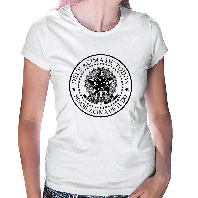 A Baby Look Brasil Acima de Tudo Deus Acima de Todos é confeccionada em tecido 100% Poliéster com gola redonda viés, costura simples e modelagem com caimento acinturado. A estampa do tema "Política" é feita através do processo Sublimação. Produto ideal para quem busca fidelidade da estampa e ótimo custo-benefício, a estampa não desbota nem quebra.