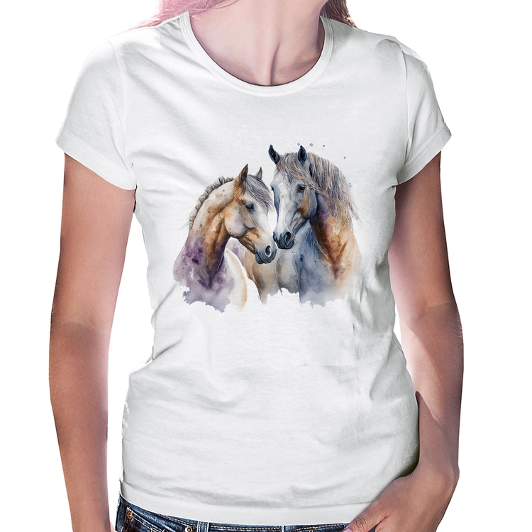 A Baby Look Cavalo e Égua é confeccionada em tecido 100% Poliéster com gola redonda viés, costura simples e modelagem com caimento acinturado. A estampa do tema "Animais" é feita através do processo Sublimação. Produto ideal para quem busca fidelidade da estampa e ótimo custo-benefício, a estampa não desbota nem quebra.