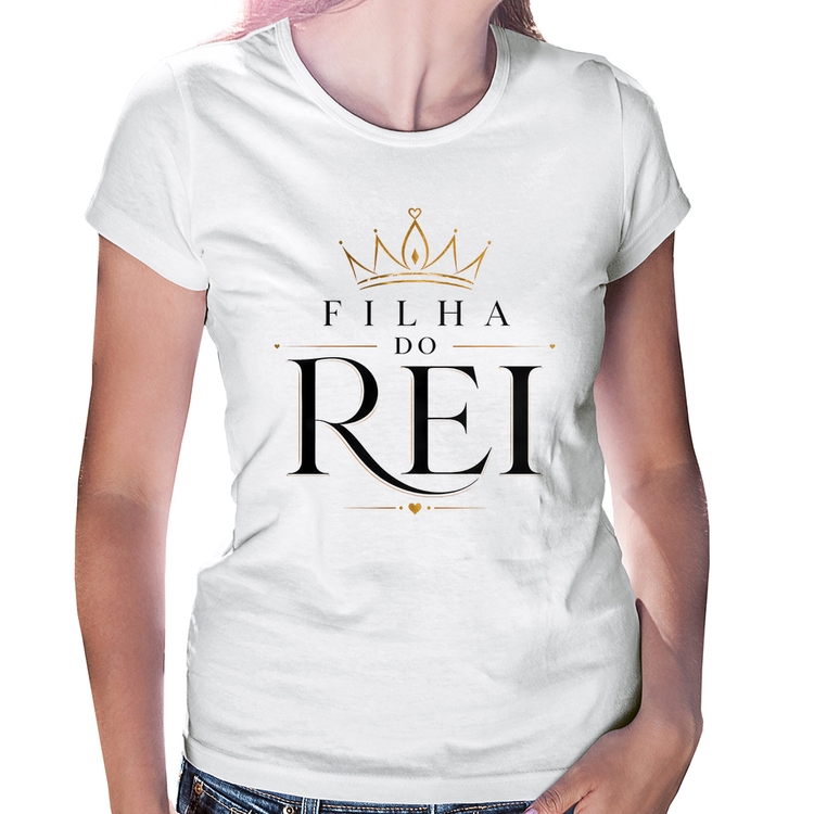A Baby Look Filha do Rei é confeccionada em tecido 100% Poliéster com gola redonda viés, costura simples e modelagem com caimento acinturado. A estampa do tema "Religiosas" é feita através do processo Sublimação. Produto ideal para quem busca fidelidade da estampa e ótimo custo-benefício, a estampa não desbota nem quebra.