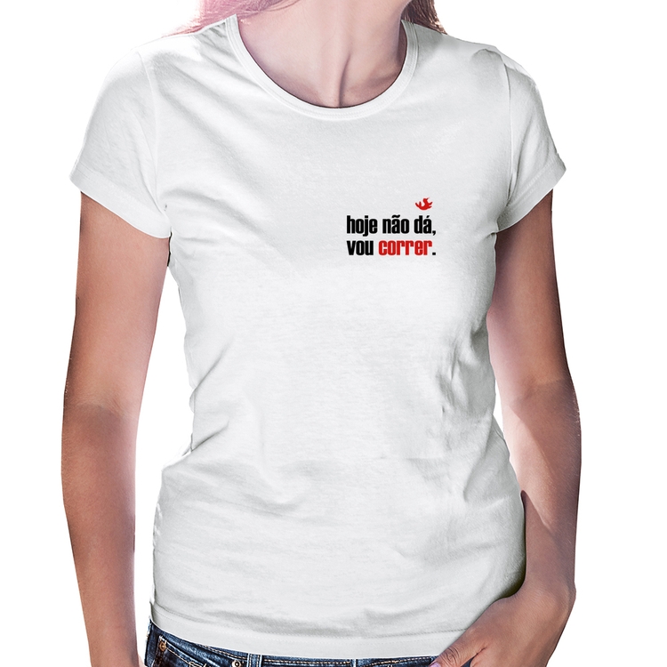 A Baby Look Hoje não dá, vou correr é confeccionada em tecido 100% Poliéster com gola redonda viés, costura simples e modelagem com caimento acinturado. A estampa do tema "Esportes" é feita através do processo Sublimação. Produto ideal para quem busca fidelidade da estampa e ótimo custo-benefício, a estampa não desbota nem quebra.
