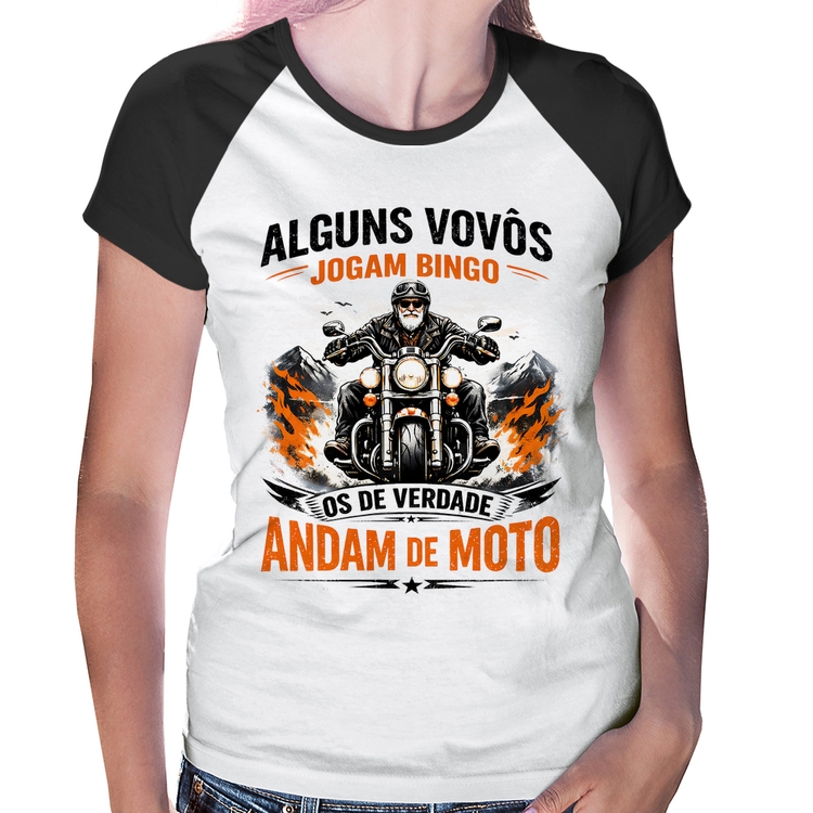 A Baby Look Raglan Alguns vovôs jogam bingo, os de verdade andam de moto é confeccionada em tecido 100% Poliéster com gola redonda viés na cor preta, costura simples e modelagem com caimento acinturado. A estampa do tema "Motos e Bikes" é feita através do processo Sublimação. Produto ideal para quem busca fidelidade da estampa e ótimo custo-benefício, a estampa não desbota nem quebra.