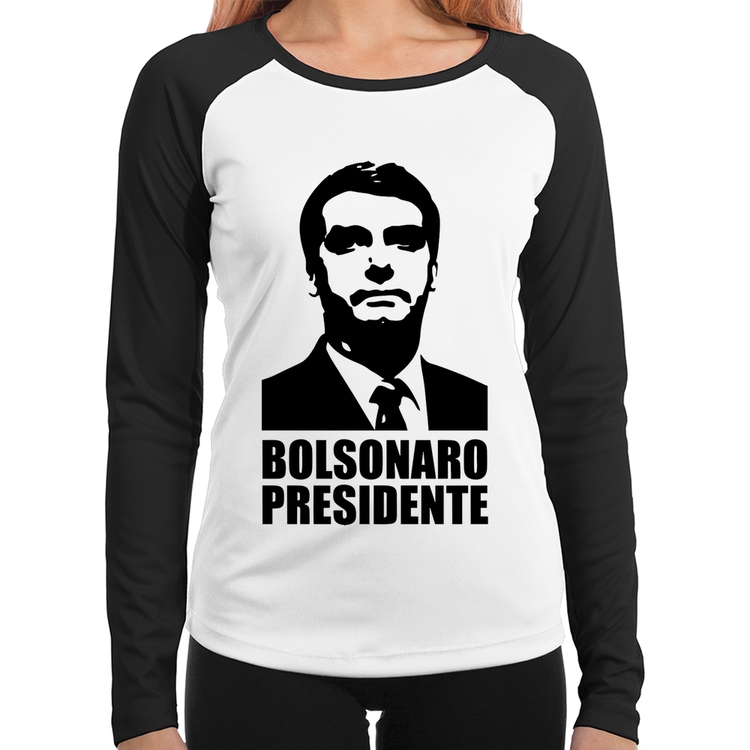 A Baby Look Raglan Bolsonaro Presidente Manga Longa é confeccionada em tecido 100% Poliéster com gola redonda viés na cor preta, costura simples e modelagem com caimento acinturado. A estampa do tema "Política" é feita através do processo Sublimação. Produto ideal para quem busca fidelidade da estampa e ótimo custo-benefício, a estampa não desbota nem quebra.