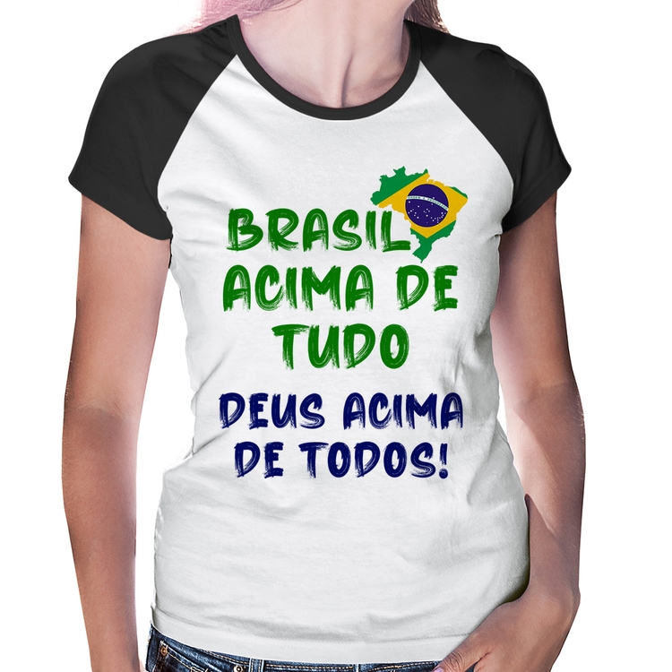 Baby Look Raglan Brasil Acima de Tudo Deus Acima de Todos - Bandeira