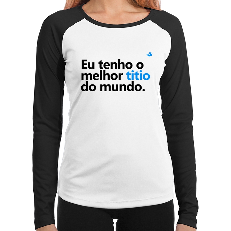 A Baby Look Raglan Eu tenho o melhor titio do mundo Manga Longa é confeccionada em tecido 100% Poliéster com gola redonda viés na cor preta, costura simples e modelagem com caimento acinturado. A estampa do tema "Comemorativas" é feita através do processo Sublimação. Produto ideal para quem busca fidelidade da estampa e ótimo custo-benefício, a estampa não desbota nem quebra.