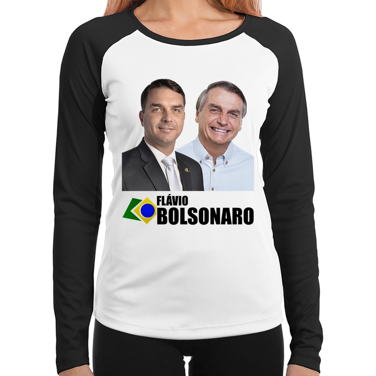 Baby Look Raglan Flávio e Jair Bolsonaro Manga Longa