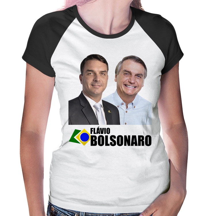 A Baby Look Raglan Flávio e Jair Bolsonaro é confeccionada em tecido 100% Poliéster com gola redonda viés na cor preta, costura simples e modelagem com caimento acinturado. A estampa do tema "Política" é feita através do processo Sublimação. Produto ideal para quem busca fidelidade da estampa e ótimo custo-benefício, a estampa não desbota nem quebra.