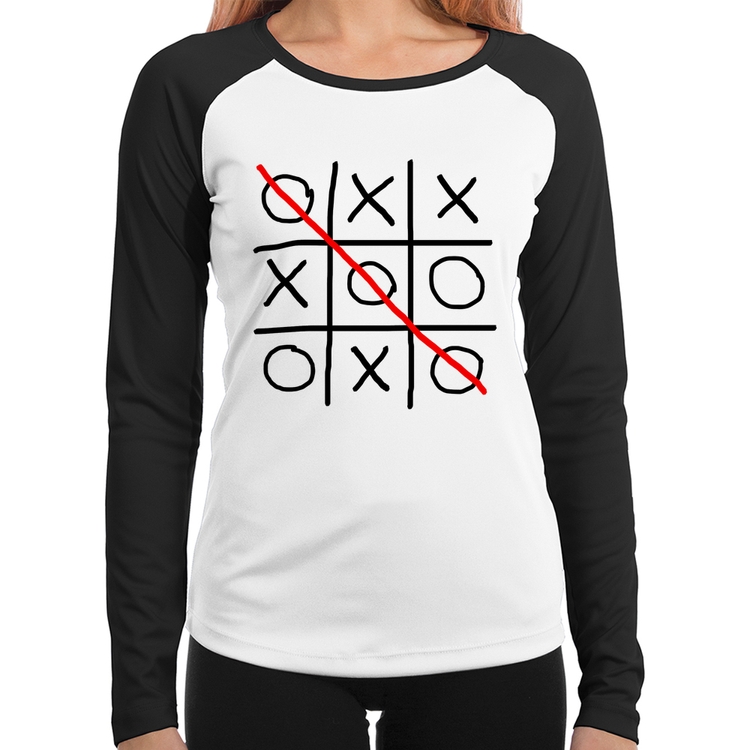 A Baby Look Raglan Jogo da Velha Manga Longa é confeccionada em tecido 100% Poliéster com gola redonda viés na cor preta, costura simples e modelagem com caimento acinturado. A estampa do tema "Game e Jogos" é feita através do processo Sublimação. Produto ideal para quem busca fidelidade da estampa e ótimo custo-benefício, a estampa não desbota nem quebra.