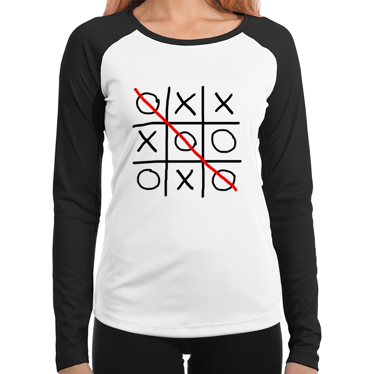 A Baby Look Raglan Jogo da Velha Manga Longa é confeccionada em tecido 100% Poliéster com gola redonda viés na cor preta, costura simples e modelagem com caimento acinturado. A estampa do tema "Game e Jogos" é feita através do processo Sublimação. Produto ideal para quem busca fidelidade da estampa e ótimo custo-benefício, a estampa não desbota nem quebra.