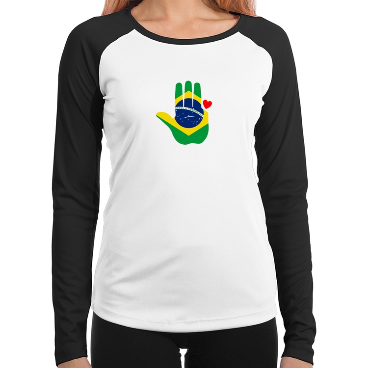 A Baby Look Raglan Mão Lula Coração Bandeira Brasil 2026 PT 13 Manga Longa é confeccionada em tecido 100% Poliéster com gola redonda viés na cor preta, costura simples e modelagem com caimento acinturado. A estampa do tema "Política" é feita através do processo Sublimação. Produto ideal para quem busca fidelidade da estampa e ótimo custo-benefício, a estampa não desbota nem quebra.