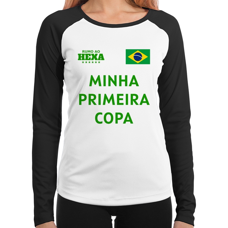 A Baby Look Raglan Minha Primeira Copa do Mundo Manga Longa é confeccionada em tecido 100% Poliéster com gola redonda viés na cor preta, costura simples e modelagem com caimento acinturado. A estampa do tema "Esportes" é feita através do processo Sublimação. Produto ideal para quem busca fidelidade da estampa e ótimo custo-benefício, a estampa não desbota nem quebra.