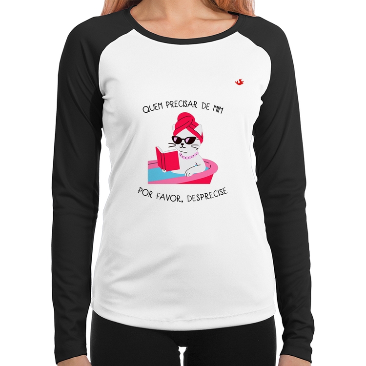 A Baby Look Raglan Quem precisar de mim, desprecise Manga Longa é confeccionada em tecido 100% Poliéster com gola redonda viés na cor preta, costura simples e modelagem com caimento acinturado. A estampa do tema "Frases e Memes" é feita através do processo Sublimação. Produto ideal para quem busca fidelidade da estampa e ótimo custo-benefício, a estampa não desbota nem quebra.