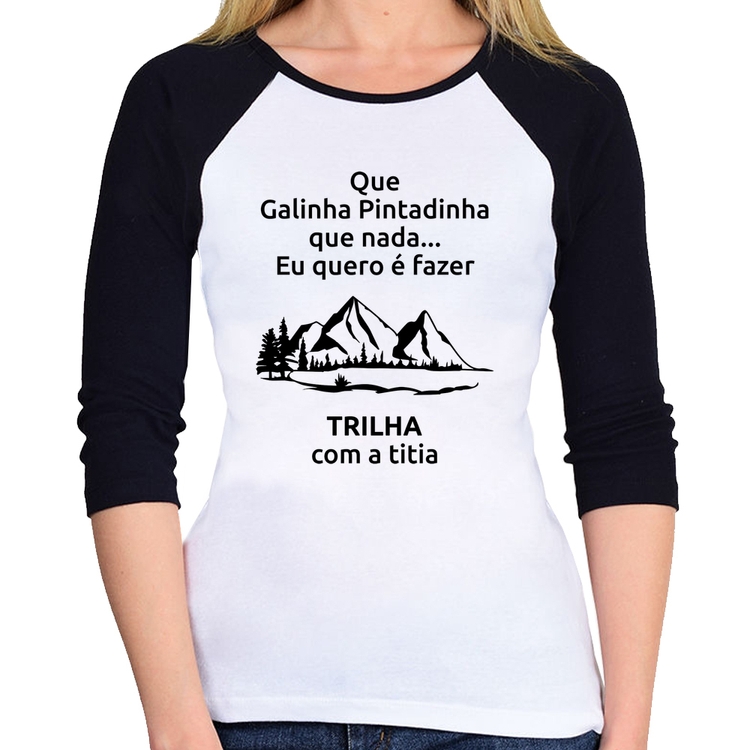 A Baby Look Raglan Trilha com a titia Trekking Manga 3/4 é confeccionada em tecido 100% Poliéster com gola redonda viés na cor preta, costura simples e modelagem com caimento acinturado. A estampa do tema "Esportes" é feita através do processo Sublimação. Produto ideal para quem busca fidelidade da estampa e ótimo custo-benefício, a estampa não desbota nem quebra.