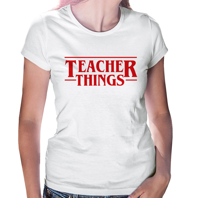 A Baby Look Teacher Things é confeccionada em tecido 100% Poliéster com gola redonda viés, costura simples e modelagem com caimento acinturado. A estampa do tema "Cursos e Profissões" é feita através do processo Sublimação. Produto ideal para quem busca fidelidade da estampa e ótimo custo-benefício, a estampa não desbota nem quebra.