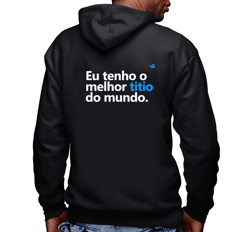 A Blusa Moletom Eu tenho o melhor titio do mundo Masculina com Capuz e Zíper é confeccionada em tecido 100% Algodão com gola redonda, fechamento em zíper, capuz forrado, bolso estilo canguru, costura reforçada, interior flanelado, acabamento com punho retilíneo, barra retilínea e modelagem com caimento reto. A estampa do tema "Comemorativas" é feita através do processo Silk Digital HD. Produto ideal para quem busca qualidade, perfeito para se esquentar no tempo frio com estilo.