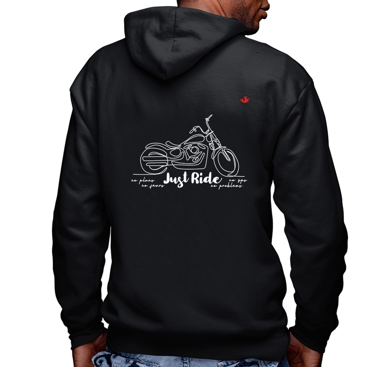 A Blusa Moletom Just Ride Masculina com Capuz e Zíper é confeccionada em tecido 100% Algodão com gola redonda, fechamento em zíper, capuz forrado, bolso estilo canguru, costura reforçada, interior flanelado, acabamento com punho retilíneo, barra retilínea e modelagem com caimento reto. A estampa do tema "Motos e Bikes" é feita através do processo Silk Digital HD. Produto ideal para quem busca qualidade, perfeito para se esquentar no tempo frio com estilo.