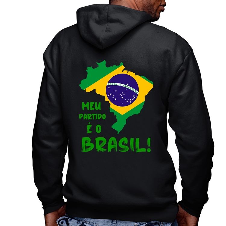 A Blusa Moletom Meu partido é o Brasil Masculina com Capuz e Zíper é confeccionada em tecido 100% Algodão com gola redonda, fechamento em zíper, capuz forrado, bolso estilo canguru, costura reforçada, interior flanelado, acabamento com punho retilíneo, barra retilínea e modelagem com caimento reto. A estampa do tema "Política" é feita através do processo Silk Digital HD. Produto ideal para quem busca qualidade, perfeito para se esquentar no tempo frio com estilo.