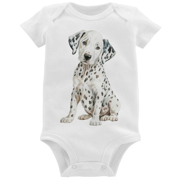 O Body Bebê Cachorro Dálmata é confeccionado em tecido 100% Poliéster com gola redonda, costura simples e modelagem com caimento reto. A estampa do tema "Animais" é feita através do processo Sublimação. Produto ideal para quem busca fidelidade da estampa e ótimo custo-benefício, a estampa não desbota nem quebra.