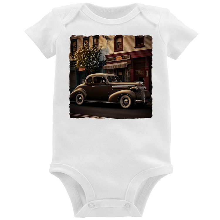 O Body Bebê Carro antigo na cidade é confeccionado em tecido 100% Poliéster com gola redonda, costura simples e modelagem com caimento reto. A estampa do tema "Carros" é feita através do processo Sublimação. Produto ideal para quem busca fidelidade da estampa e ótimo custo-benefício, a estampa não desbota nem quebra.