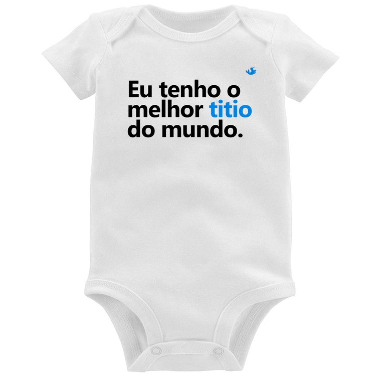 O Body Bebê Eu tenho o melhor titio do mundo é confeccionado em tecido 100% Poliéster com gola redonda, costura simples e modelagem com caimento reto. A estampa do tema "Comemorativas" é feita através do processo Sublimação. Produto ideal para quem busca fidelidade da estampa e ótimo custo-benefício, a estampa não desbota nem quebra.