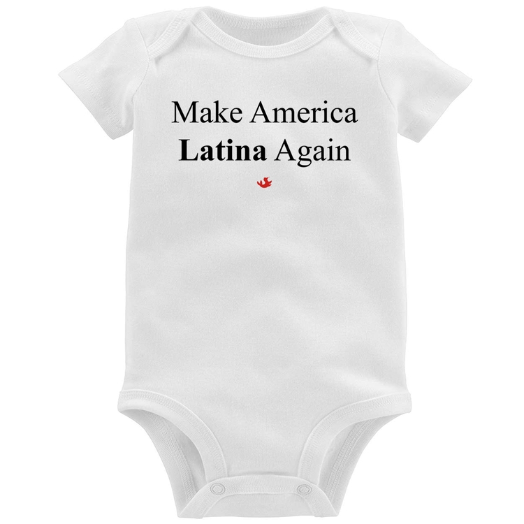 O Body Bebê Make America Latina Again é confeccionado em tecido 100% Poliéster com gola redonda, costura simples e modelagem com caimento reto. A estampa do tema "Frases e Memes" é feita através do processo Sublimação. Produto ideal para quem busca fidelidade da estampa e ótimo custo-benefício, a estampa não desbota nem quebra.