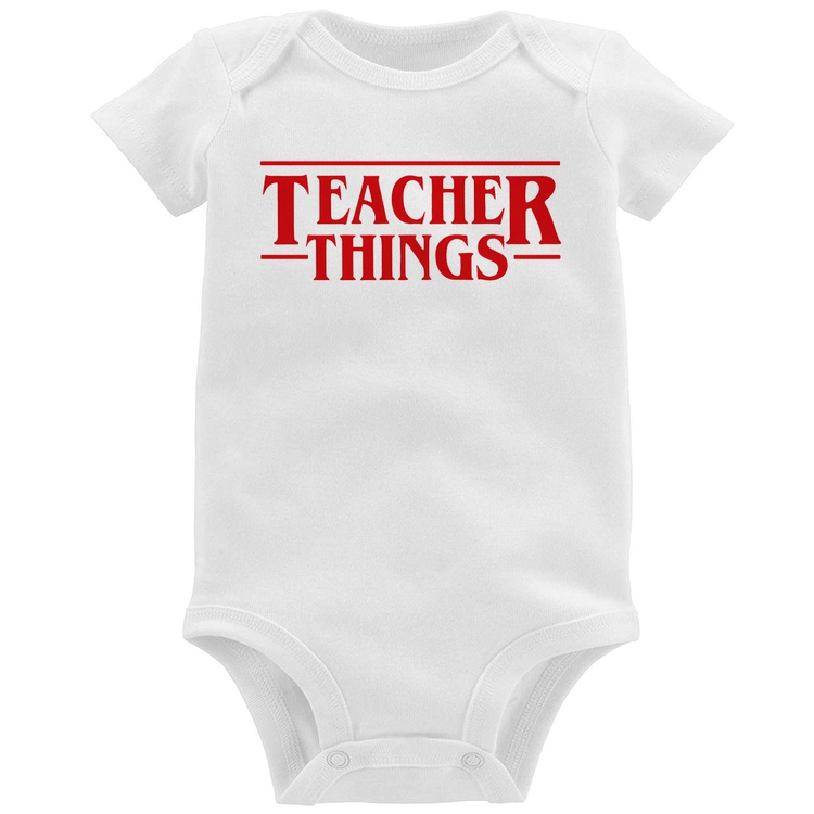 O Body Bebê Teacher Things é confeccionado em tecido 100% Poliéster com gola redonda, costura simples e modelagem com caimento reto. A estampa do tema "Cursos e Profissões" é feita através do processo Sublimação. Produto ideal para quem busca fidelidade da estampa e ótimo custo-benefício, a estampa não desbota nem quebra.