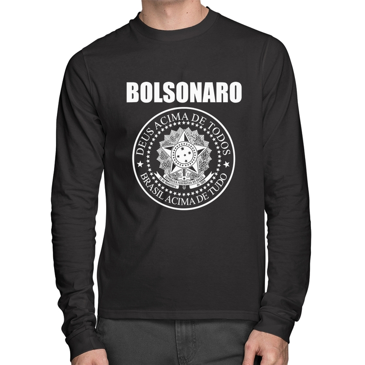 A Camiseta Algodão Bolsonaro Brasil Acima de Tudo Deus Acima de Todos Manga Longa é confeccionada em tecido 100% Algodão, malha penteada fio 30.1 com gola redonda, costura reforçada ombro a ombro e modelagem com caimento reto. A estampa do tema "Política" é feita através do processo Digital DTG. Produto ideal para quem busca ótima qualidade e conforto. O percentual de encolhimento pós lavagem é 3,50%.