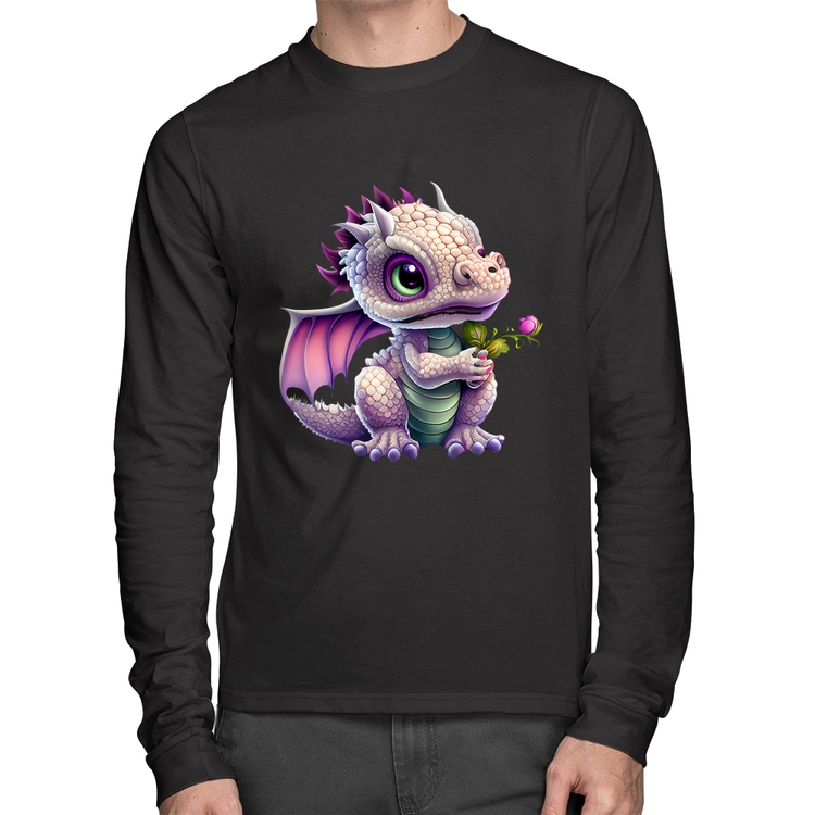 A Camiseta Algodão Dragão Bebê Manga Longa é confeccionada em tecido 100% Algodão, malha penteada fio 30.1 com gola redonda, costura reforçada ombro a ombro e modelagem com caimento reto. A estampa do tema "Animais" é feita através do processo Digital DTG. Produto ideal para quem busca ótima qualidade e conforto. O percentual de encolhimento pós lavagem é 3,50%.