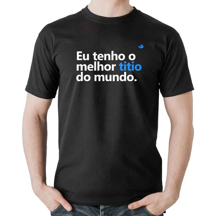 A Camiseta Algodão Eu tenho o melhor titio do mundo é confeccionada em tecido 100% Algodão, malha penteada fio 30.1 com gola redonda, costura reforçada ombro a ombro e modelagem com caimento reto. A estampa do tema "Comemorativas" é feita através do processo Digital DTG. Produto ideal para quem busca ótima qualidade e conforto. O percentual de encolhimento pós lavagem é 3,50%.