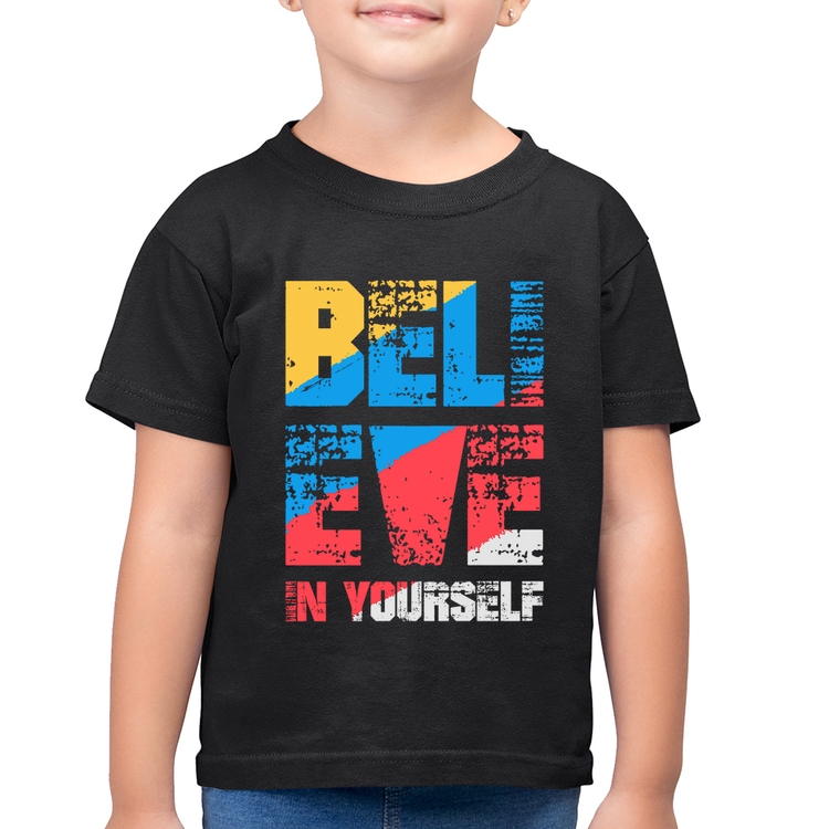 A Camiseta Algodão Infantil Believe In Yourself é confeccionada em tecido 100% Algodão, malha penteada fio 30.1 com gola redonda, costura reforçada ombro a ombro e modelagem com caimento reto. A estampa do tema "Frases e Memes" é feita através do processo Digital DTG. Produto ideal para quem busca ótima qualidade e conforto. O percentual de encolhimento pós lavagem é 3,50%.
