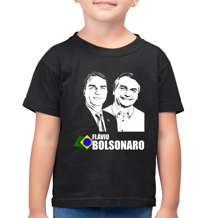 Camiseta Algodão Infantil Flávio e Jair Bolsonaro 2026