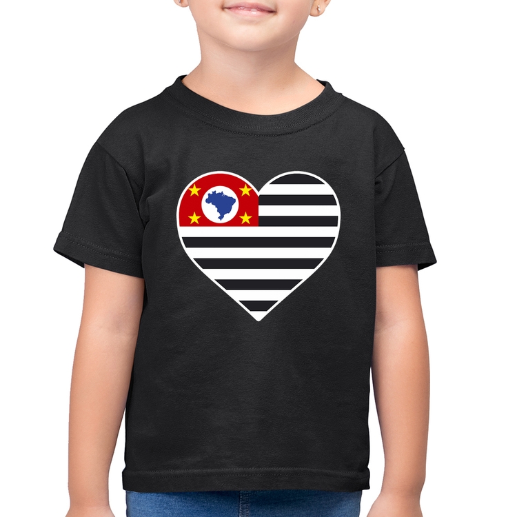A Camiseta Algodão Infantil São Paulo Bandeira Estado Coração é confeccionada em tecido 100% Algodão, malha penteada fio 30.1 com gola redonda, costura reforçada ombro a ombro e modelagem com caimento reto. A estampa do tema "Bandeiras" é feita através do processo Digital DTG. Produto ideal para quem busca ótima qualidade e conforto. O percentual de encolhimento pós lavagem é 3,50%.