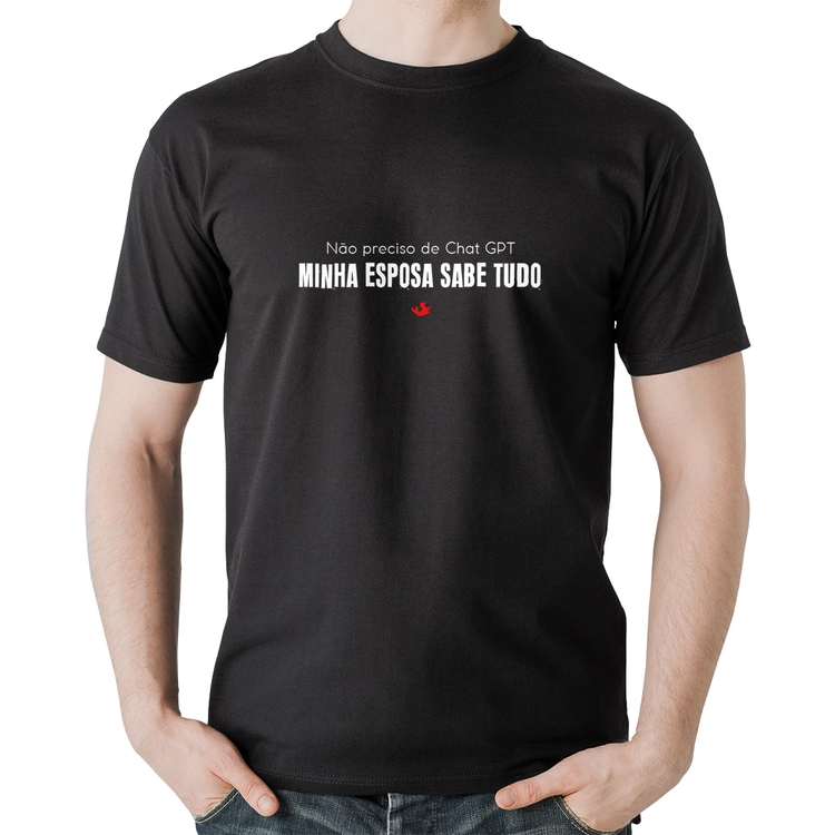 A Camiseta Algodão Não preciso de Chat GPT, Minha esposa sabe tudo é confeccionada em tecido 100% Algodão, malha penteada fio 30.1 com gola redonda, costura reforçada ombro a ombro e modelagem com caimento reto. A estampa do tema "Frases e Memes" é feita através do processo Digital DTG. Produto ideal para quem busca ótima qualidade e conforto. O percentual de encolhimento pós lavagem é 3,50%.