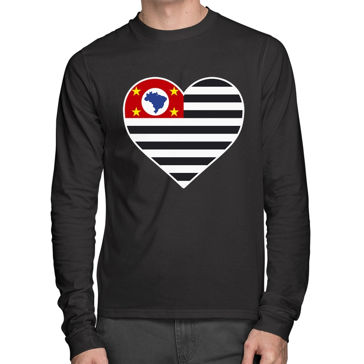 A Camiseta Algodão São Paulo Bandeira Estado Coração Manga Longa é confeccionada em tecido 100% Algodão, malha penteada fio 30.1 com gola redonda, costura reforçada ombro a ombro e modelagem com caimento reto. A estampa do tema "Bandeiras" é feita através do processo Digital DTG. Produto ideal para quem busca ótima qualidade e conforto. O percentual de encolhimento pós lavagem é 3,50%.