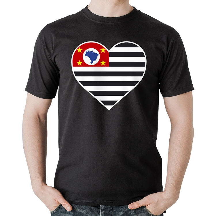 A Camiseta Algodão São Paulo Bandeira Estado Coração é confeccionada em tecido 100% Algodão, malha penteada fio 30.1 com gola redonda, costura reforçada ombro a ombro e modelagem com caimento reto. A estampa do tema "Bandeiras" é feita através do processo Digital DTG. Produto ideal para quem busca ótima qualidade e conforto. O percentual de encolhimento pós lavagem é 3,50%.