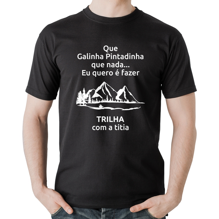 A Camiseta Algodão Trilha com a titia Trekking é confeccionada em tecido 100% Algodão, malha penteada fio 30.1 com gola redonda, costura reforçada ombro a ombro e modelagem com caimento reto. A estampa do tema "Esportes" é feita através do processo Digital DTG. Produto ideal para quem busca ótima qualidade e conforto. O percentual de encolhimento pós lavagem é 3,50%.