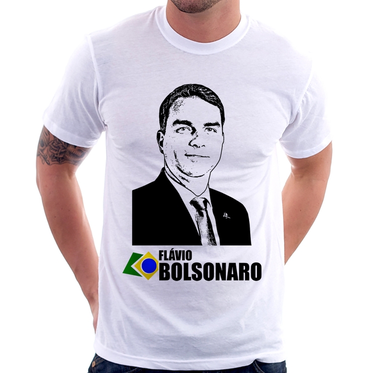 A Camiseta Flávio Bolsonaro 2026 é confeccionada em tecido 100% Poliéster com gola redonda, costura simples e modelagem com caimento reto. A estampa do tema "Política" é feita através do processo Sublimação. Produto ideal para quem busca fidelidade da estampa e ótimo custo-benefício, a estampa não desbota nem quebra.