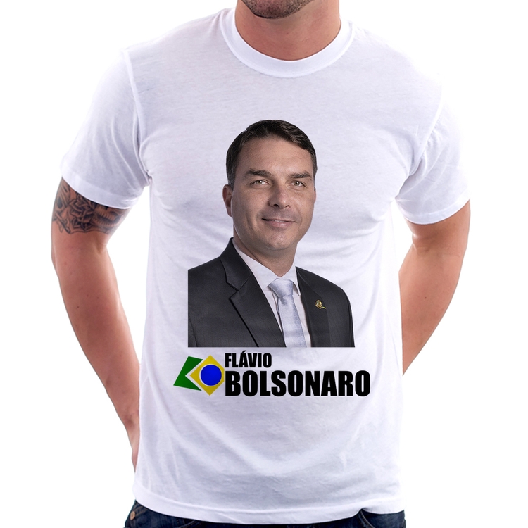 A Camiseta Flávio Bolsonaro é confeccionada em tecido 100% Poliéster com gola redonda, costura simples e modelagem com caimento reto. A estampa do tema "Política" é feita através do processo Sublimação. Produto ideal para quem busca fidelidade da estampa e ótimo custo-benefício, a estampa não desbota nem quebra.