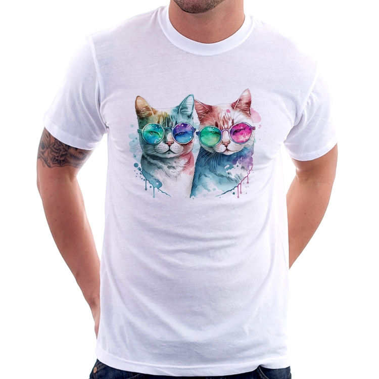 A Camiseta Gatos de óculos é confeccionada em tecido 100% Poliéster com gola redonda, costura simples e modelagem com caimento reto. A estampa do tema "Esportes" é feita através do processo Sublimação. Produto ideal para quem busca fidelidade da estampa e ótimo custo-benefício, a estampa não desbota nem quebra.