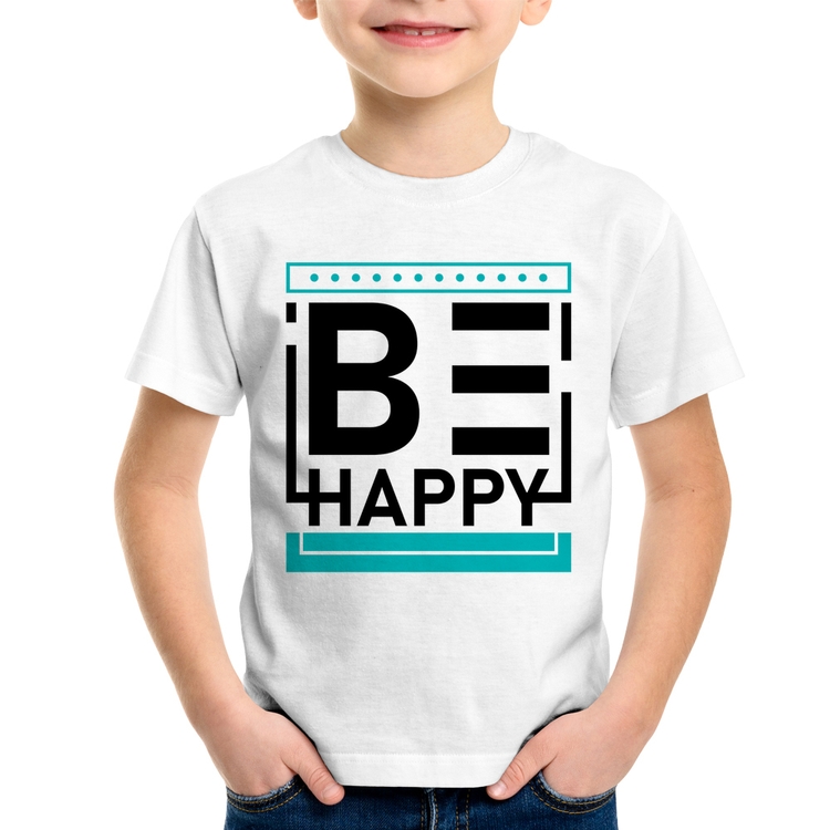 A Camiseta Infantil Be Happy é confeccionada em tecido 100% Poliéster com gola redonda, costura simples e modelagem com caimento reto. A estampa do tema "Frases e Memes" é feita através do processo Sublimação. Produto ideal para quem busca fidelidade da estampa e ótimo custo-benefício, a estampa não desbota nem quebra.