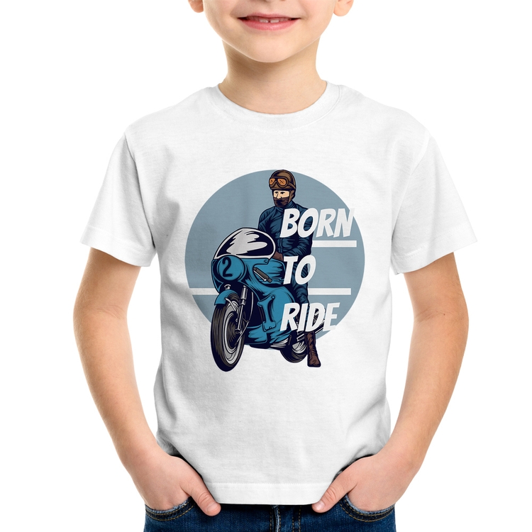 A Camiseta Infantil Born To Ride é confeccionada em tecido 100% Poliéster com gola redonda, costura simples e modelagem com caimento reto. A estampa do tema "Motos e Bikes" é feita através do processo Sublimação. Produto ideal para quem busca fidelidade da estampa e ótimo custo-benefício, a estampa não desbota nem quebra.