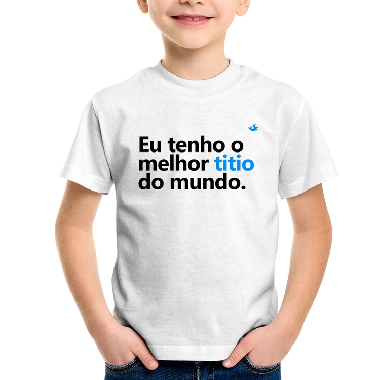 A Camiseta Infantil Eu tenho o melhor titio do mundo é confeccionada em tecido 100% Poliéster com gola redonda, costura simples e modelagem com caimento reto. A estampa do tema "Comemorativas" é feita através do processo Sublimação. Produto ideal para quem busca fidelidade da estampa e ótimo custo-benefício, a estampa não desbota nem quebra.