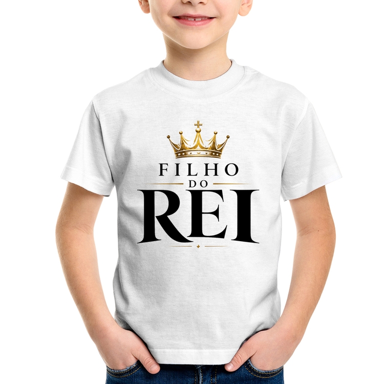 A Camiseta Infantil Filho do Rei é confeccionada em tecido 100% Poliéster com gola redonda, costura simples e modelagem com caimento reto. A estampa do tema "Religiosas" é feita através do processo Sublimação. Produto ideal para quem busca fidelidade da estampa e ótimo custo-benefício, a estampa não desbota nem quebra.