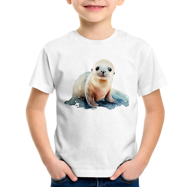 A Camiseta Infantil Foca Bebê é confeccionada em tecido 100% Poliéster com gola redonda, costura simples e modelagem com caimento reto. A estampa do tema "Esportes" é feita através do processo Sublimação. Produto ideal para quem busca fidelidade da estampa e ótimo custo-benefício, a estampa não desbota nem quebra.