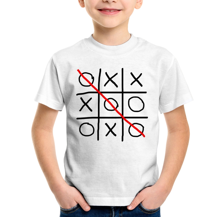 A Camiseta Infantil Jogo da Velha é confeccionada em tecido 100% Poliéster com gola redonda, costura simples e modelagem com caimento reto. A estampa do tema "Game e Jogos" é feita através do processo Sublimação. Produto ideal para quem busca fidelidade da estampa e ótimo custo-benefício, a estampa não desbota nem quebra.