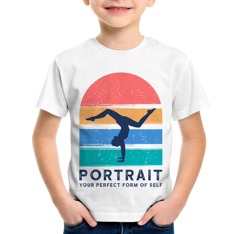A Camiseta Infantil Portrait Your Perfect Form Of Self é confeccionada em tecido 100% Poliéster com gola redonda, costura simples e modelagem com caimento reto. A estampa do tema "Esportes" é feita através do processo Sublimação. Produto ideal para quem busca fidelidade da estampa e ótimo custo-benefício, a estampa não desbota nem quebra.