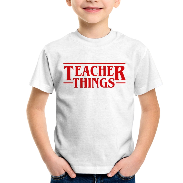 A Camiseta Infantil Teacher Things é confeccionada em tecido 100% Poliéster com gola redonda, costura simples e modelagem com caimento reto. A estampa do tema "Cursos e Profissões" é feita através do processo Sublimação. Produto ideal para quem busca fidelidade da estampa e ótimo custo-benefício, a estampa não desbota nem quebra.