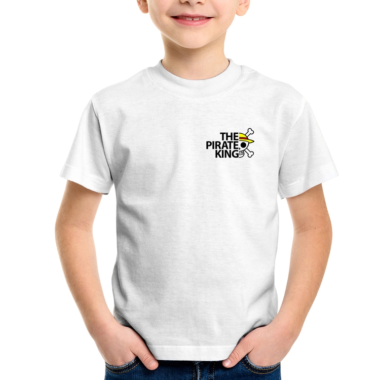A Camiseta Infantil The Pirate King é confeccionada em tecido 100% Poliéster com gola redonda, costura simples e modelagem com caimento reto. A estampa do tema "Animes e Desenhos" é feita através do processo Sublimação. Produto ideal para quem busca fidelidade da estampa e ótimo custo-benefício, a estampa não desbota nem quebra.