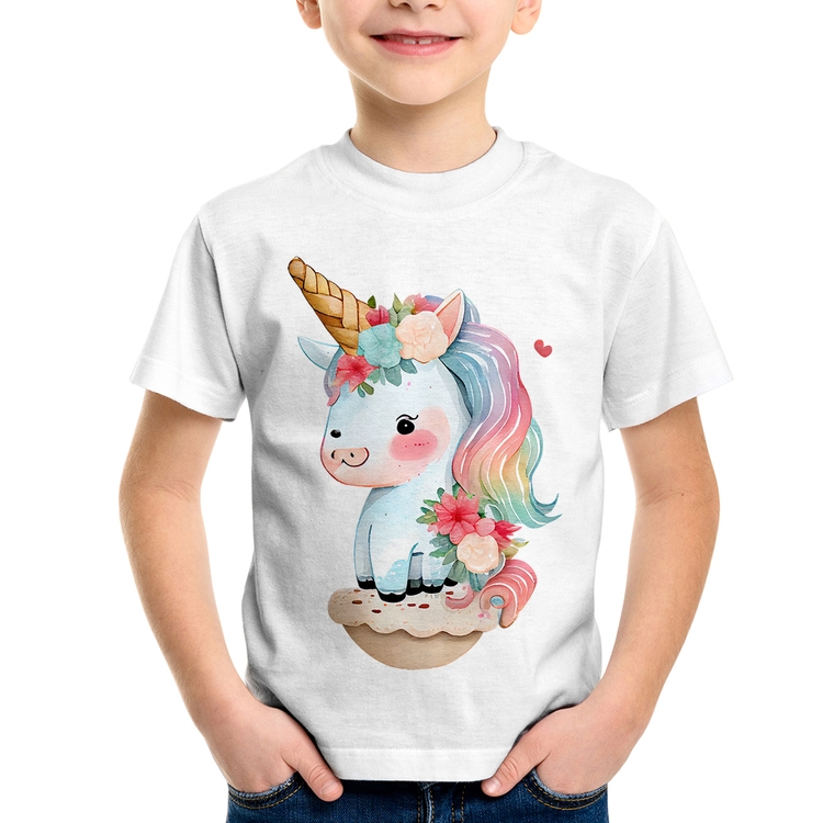 A Camiseta Infantil Unicórnio Bebê é confeccionada em tecido 100% Poliéster com gola redonda, costura simples e modelagem com caimento reto. A estampa do tema "Animais" é feita através do processo Sublimação. Produto ideal para quem busca fidelidade da estampa e ótimo custo-benefício, a estampa não desbota nem quebra.
