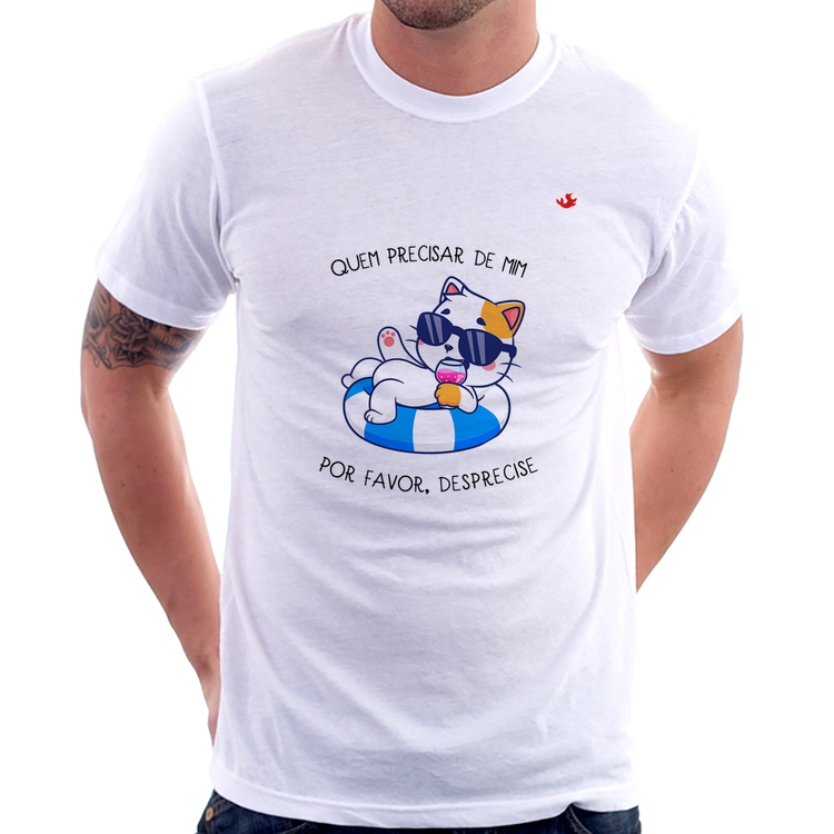 A Camiseta Quem precisar de mim, por favor, desprecise é confeccionada em tecido 100% Poliéster com gola redonda, costura simples e modelagem com caimento reto. A estampa do tema "Frases e Memes" é feita através do processo Sublimação. Produto ideal para quem busca fidelidade da estampa e ótimo custo-benefício, a estampa não desbota nem quebra.